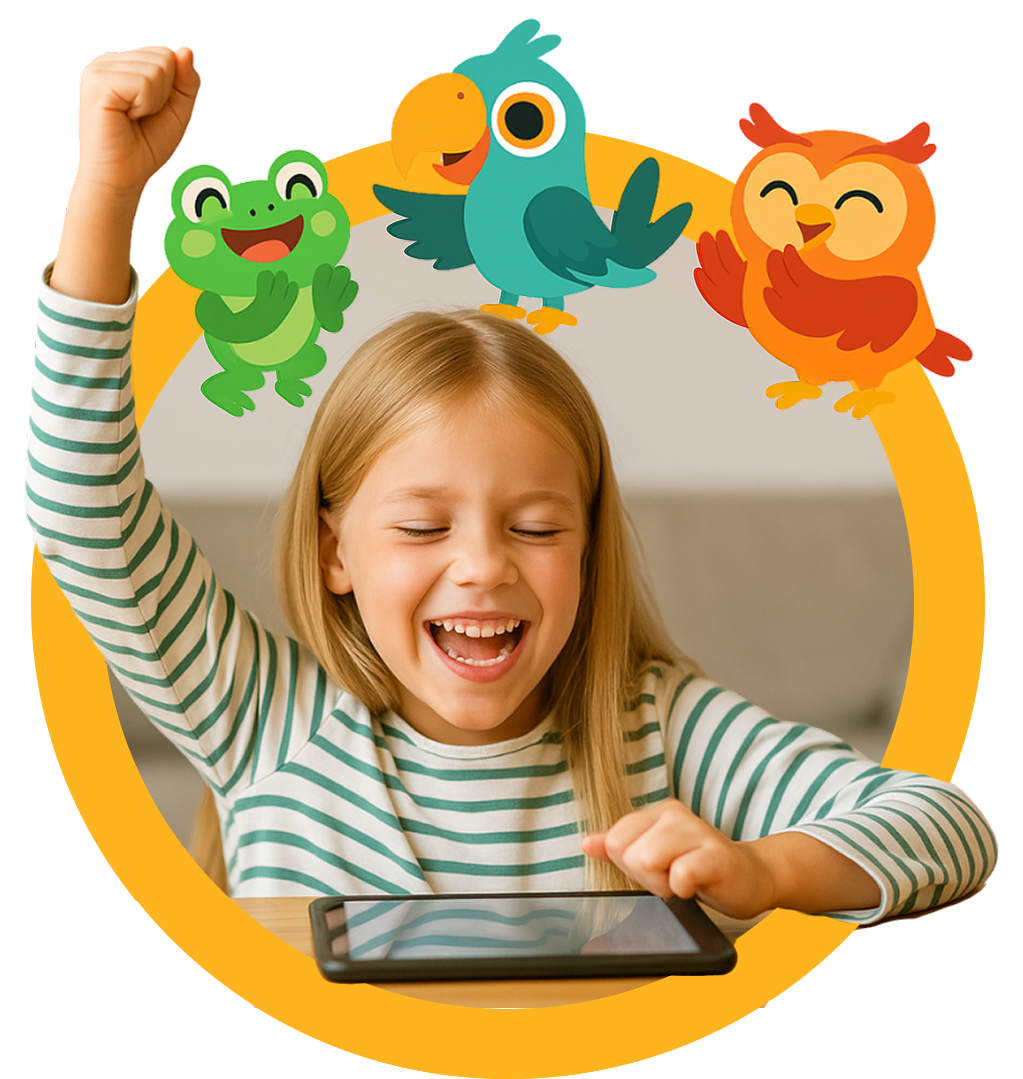 With cheering characters and progress badges, kids stay motivated and proud of what they’re learning.